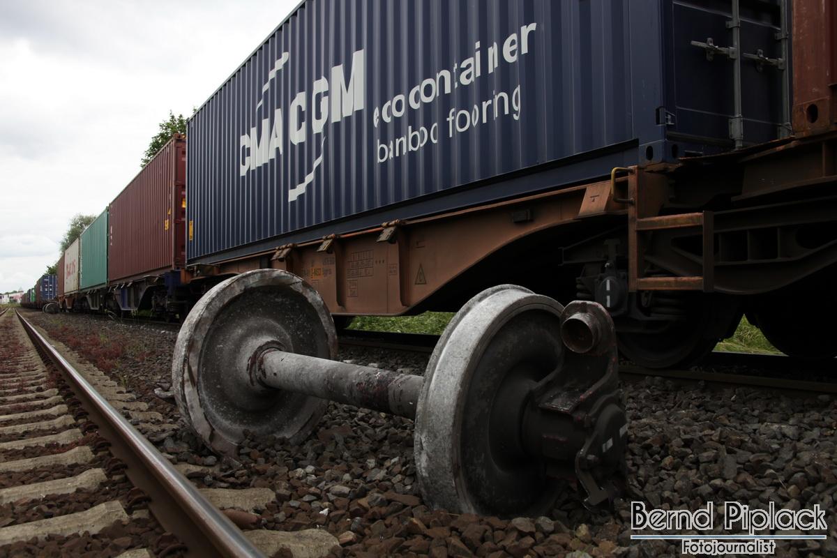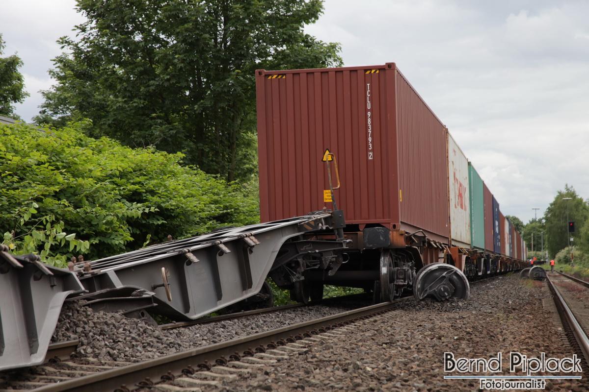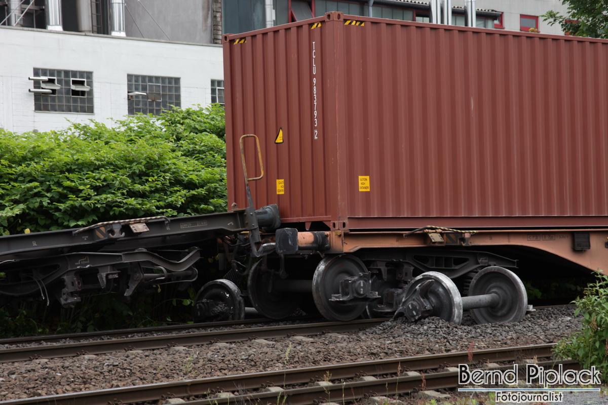 | HKM geschrieben am, 19.06.2015 , von Bernd Piplack Am 19.06.2015 entgleiste ein Wagen auf der Anschlussstrecke nach HKM (Hüttenwerke Krupp-Mannesmann in Duisburg-Hüttenheim). Dieser wurde mehrere hundert Meter mitgeschliffen, bevor die Entgleisung auffiel. Dementsprechen war ein grosser Teil des Gleises demoliert. ![]() ![]() ![]() ![]() |